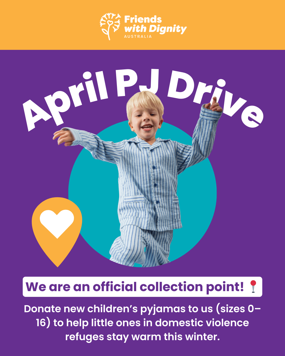 Once the drive launches, you’ll be able to search for a registered Collection Point in your area and drop off brand-new pyjamas (sizes 0–16).